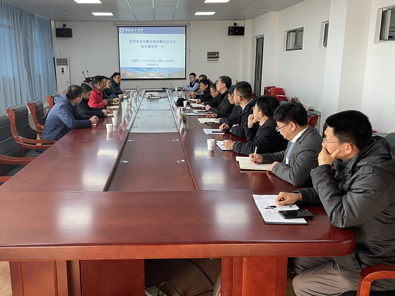 1月11日下午,安徽省地质测绘技术院院长郭厚军、副院长兼总工程师储修林等一行8人来学院走访调研。双方在北503会议室进行座谈交流,座谈会由学院院长赵志根主持。学院党委书记吴军、副书记兼行政副院长刘瑞、副院长余学祥及相关专业负责人参加了座谈。