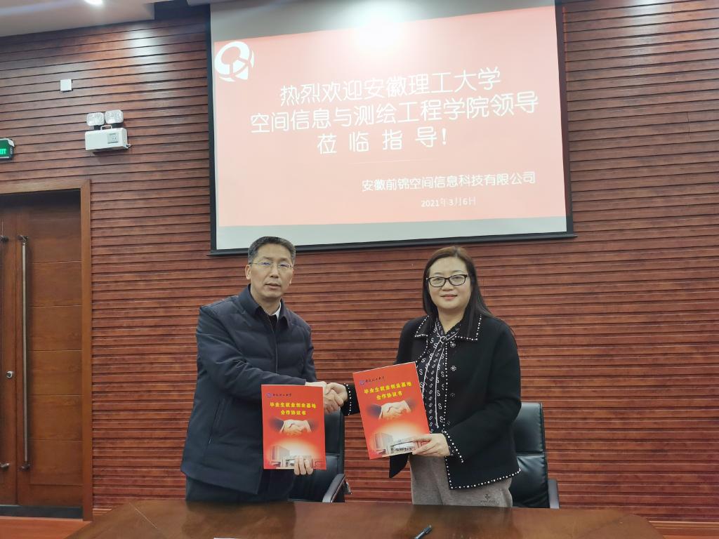 党委书记吴军等一行前往合肥,分别在安徽前锦空间信息有限公司和西安建材地质工程勘察院安徽分院挂牌“大学生就业创业基地”。