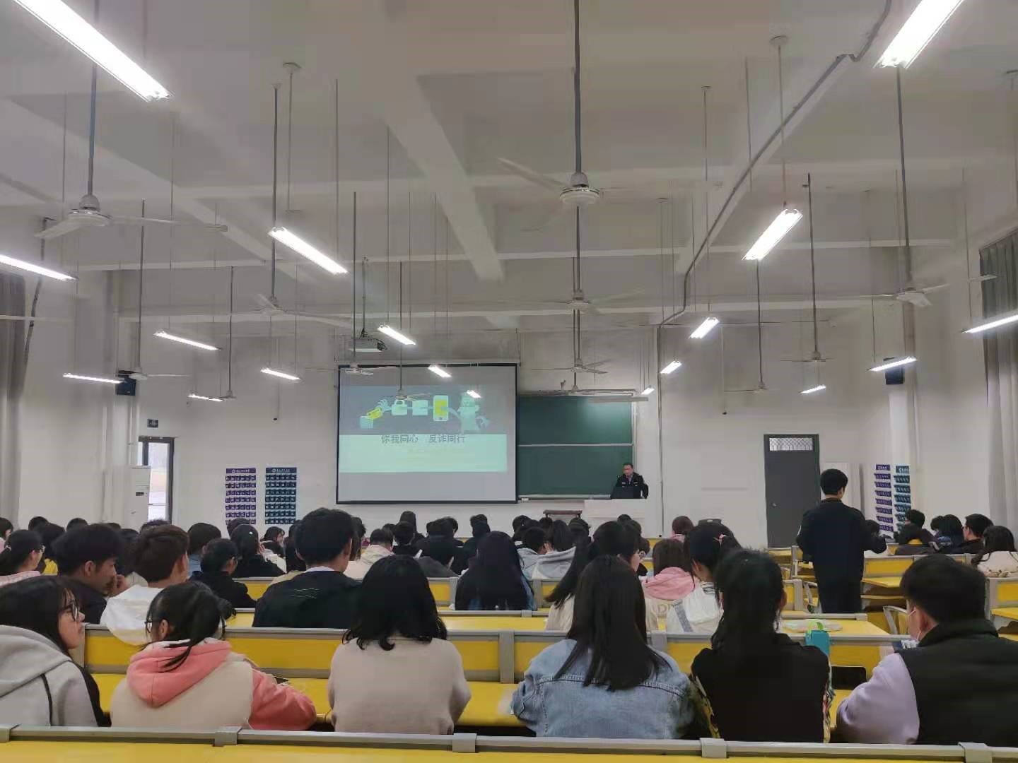 邀请淮南市公安局反电诈中心三级警长井曜,在天工103教室开展“你我同心,反诈同行”主题防诈骗宣传讲座。讲座由学院辅导员胡豪杰主持,学院共计200名学生参与此次讲座。