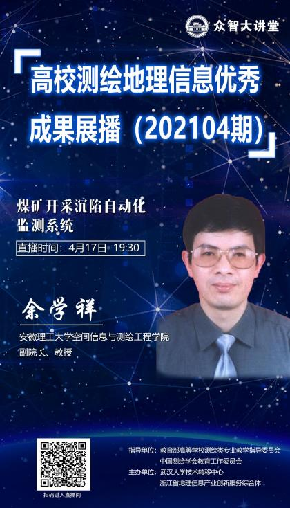 副院长余学祥教授,受测绘教育“两委会”(教育部高等学校测绘类专业教学指导委员会、中国测绘学会教育工作委员会)邀请,担任“众智大讲堂-高校测绘地理信息优秀成果展播”(202104期)主讲专家。