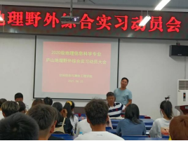 地理信息科学专业庐山地理野外综合实习动员会在学院北512报告厅举行。院副书记兼行政副院长刘瑞、业务副院长王磊、地信系主任王世航、实习指导老师杨震、辅导员韦伟出席动员会,地信20-1班全体学生参加了动员会。动员会由韦伟主持。