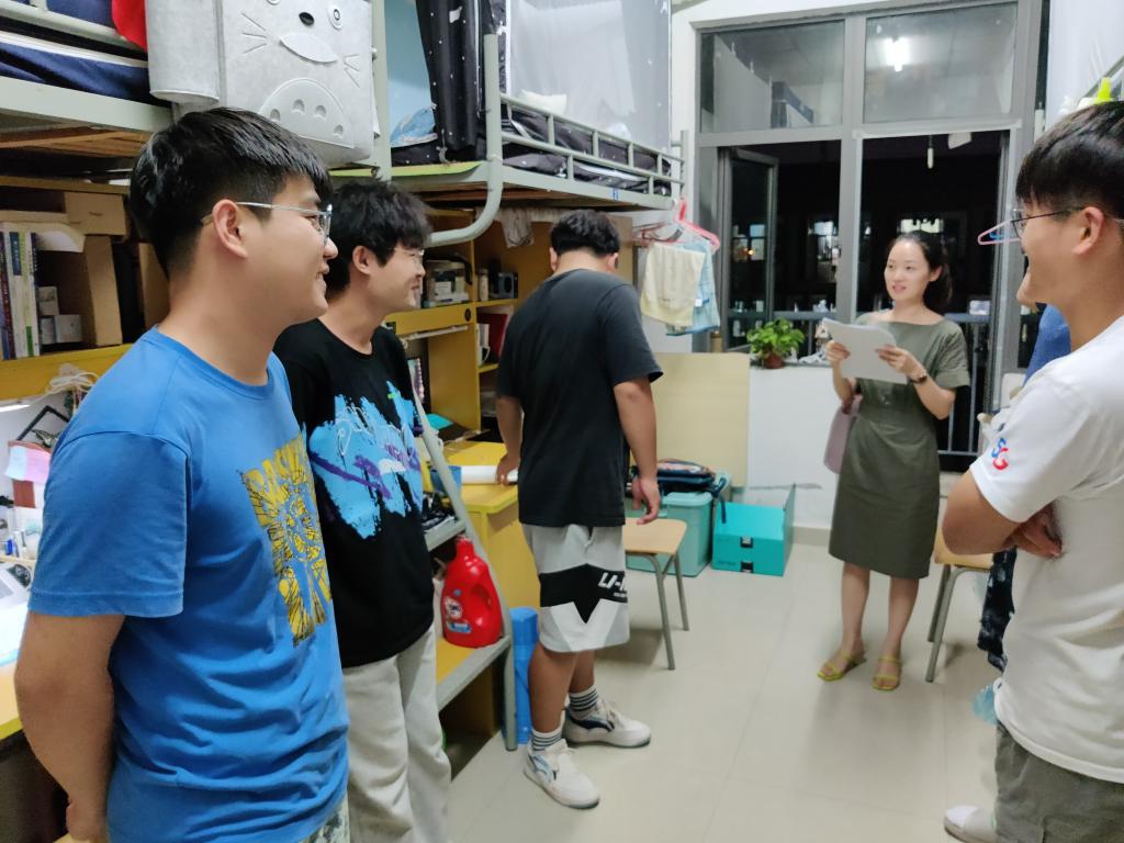 本科生、研究生陆续返校,为进一步了解学生返校后状态,激励同学们以更积极的精神面貌投入到校园学习和生活中,9月3日晚,学院党委副书记孟静及各年级辅导员深入学生宿舍,实地了解学生返校后的学习生活情况,为学生送去关心和问候。
