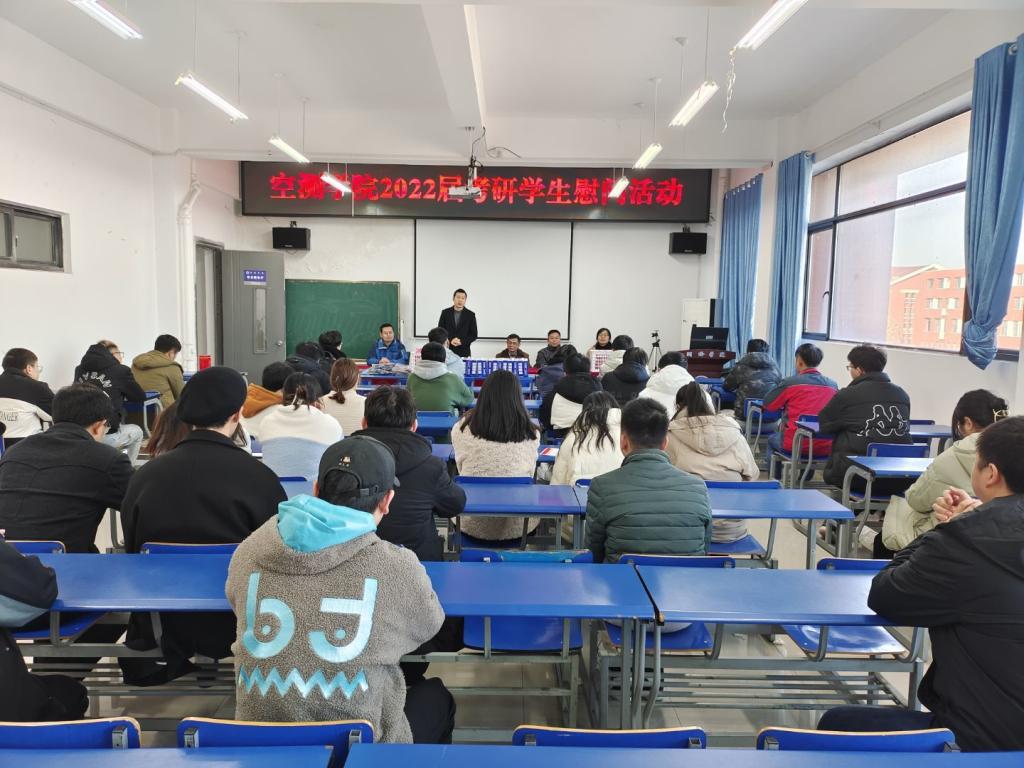 在求本楼512报告厅开展2022届考研学子慰问活动。学院领导、系部主任、全体辅导员以及40余位考研代表参加了活动。
