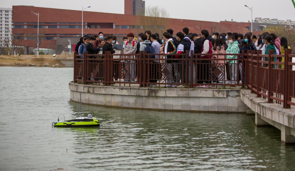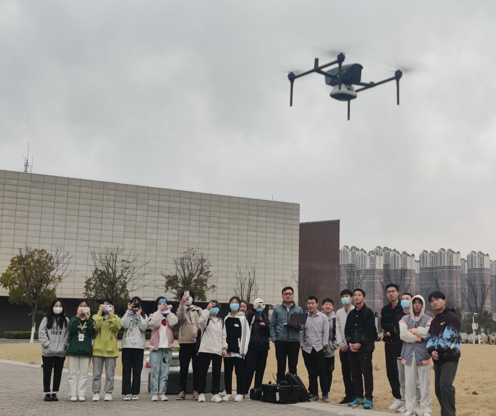 在仰山广场开展“普及测绘新发展,践行时代新使命”主题的测绘先进技术装备科普展演,学院副院长王磊、中海达企业副总经理李典斌、学院教师参加科普展演,学院300余名学生现场观摩技术装备的操作流程。