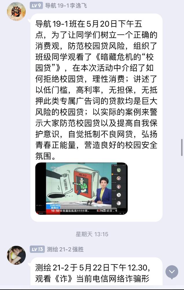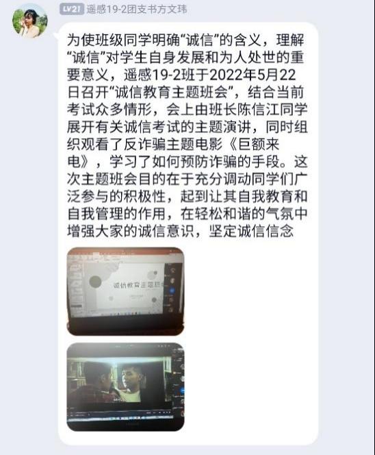 学院以班级为单位组织召开“学生资助诚信”主题教育班会,通过多样视频材料,普及征信知识和预防金融诈骗、电信诈骗和不良网贷等方面的知识,强调诚信借贷、诚信考试、诚信就业等的重要性,引导学生提高征信意识、金融安全防范意识,倡导新时代大学生应恪守“诚信为本”。同时,积极建设诚信个人、诚信宿舍、诚信班级,让诚信之风吹进每位同学心中。