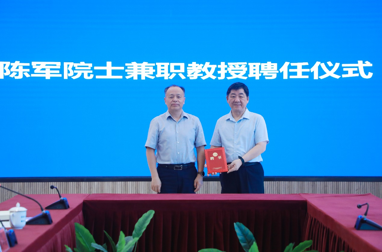 陈军院士对学校的信任表示感谢。他表示在今后的工作中将加强合作,积极助力学校学科建设、人才培养及合作交流。