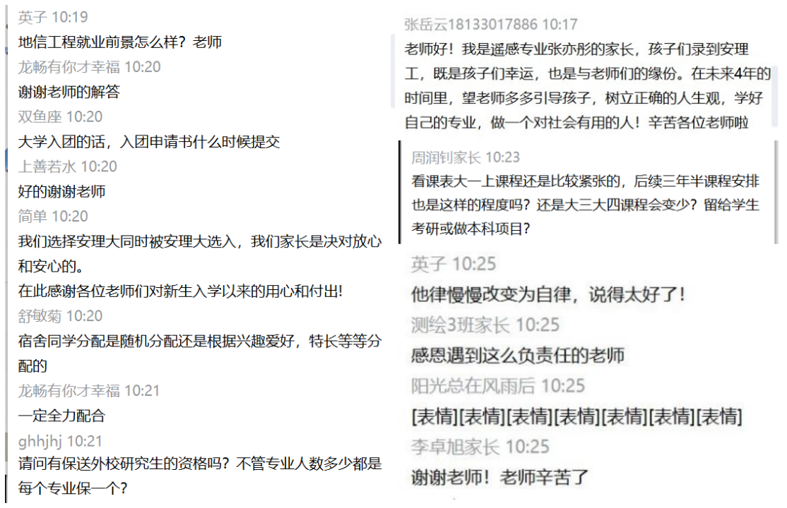 随后,就测绘工程、遥感科学与技术、地理空间信息工程、导航工程4个本科专业新生和家长关切的问题,王磊介绍了课程设置、学科专业特点、就业方向、历年考研情况等内容,勉励广大新生要志存高远,珍惜韶华,努力学习。