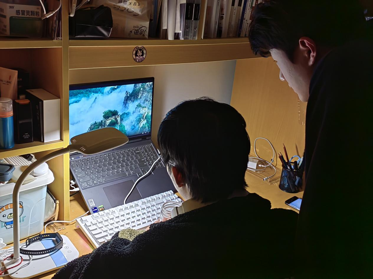 22级新生在宿舍观看“青春为祖国 挺膺共担当”主题思政大课
