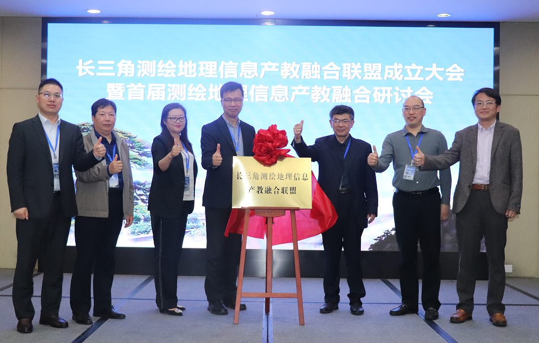 大会上,当选的理事长、副理事长单位的领导共同为联盟揭牌,标志着长三角测绘地理信息产教融合联盟正式成立!