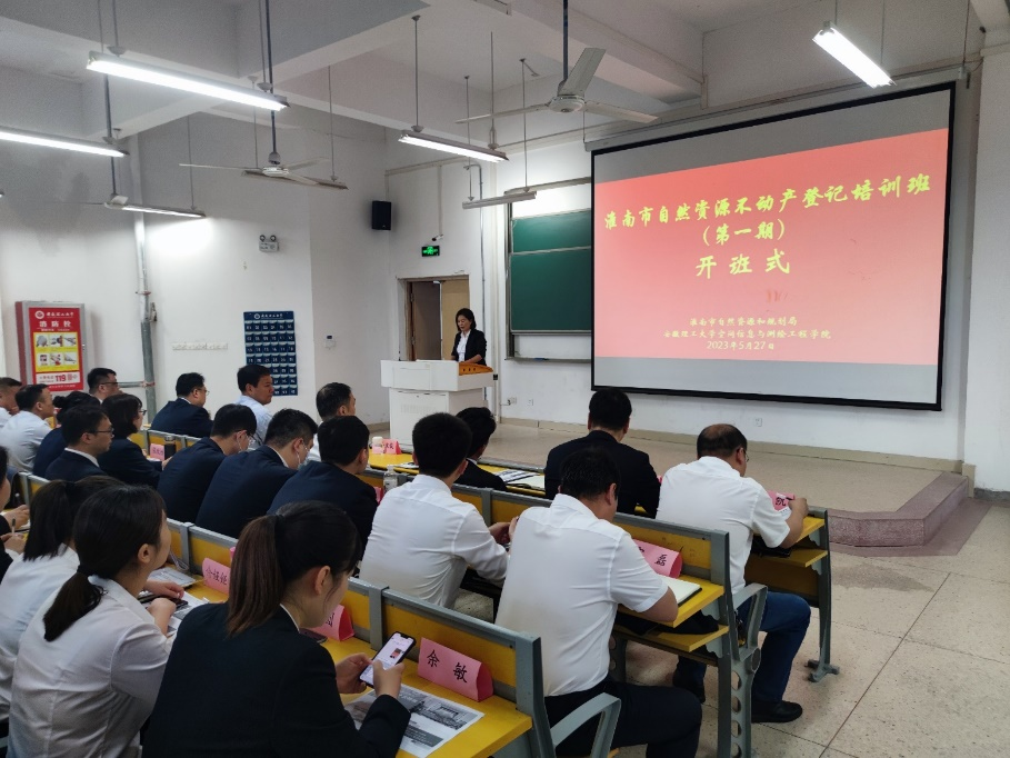 党委书记范洪喜,以及来自淮南市不动产登记中心、凤台县不动产登记和交易中心、寿县自然资源确权登记中心、毛集实验区不动产登记中心的100名人员参加了开班仪式。开班仪式由学院副院长赵兴旺主持。