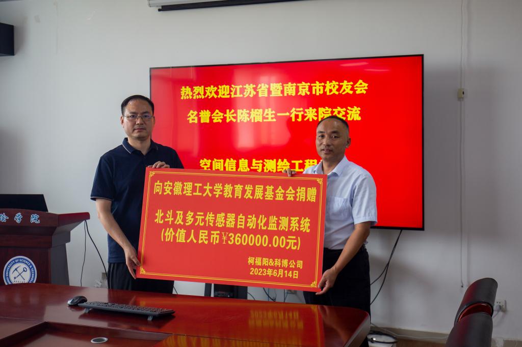 6月14日下午,江苏科博空间信息科技有限公司仪器及创新资金捐赠仪式在求本楼503会议室举行。校党委常委、副校长张平松出席捐赠仪式并讲话。采煤74级校友、南京化建产业集团原副局长陈榴生,地质83级校友、江苏煤炭地质局纪委副书记张宏安,电气89级校友、南京派光高速载运智慧感知研究院副总经理吴海君,测绘2000级校友、南京信息工程大学科技产业处副处长、江苏科博空间信息科技有限公司创始人柯福阳等校友一行8人,校合作发展处副处长窦家环,色情片