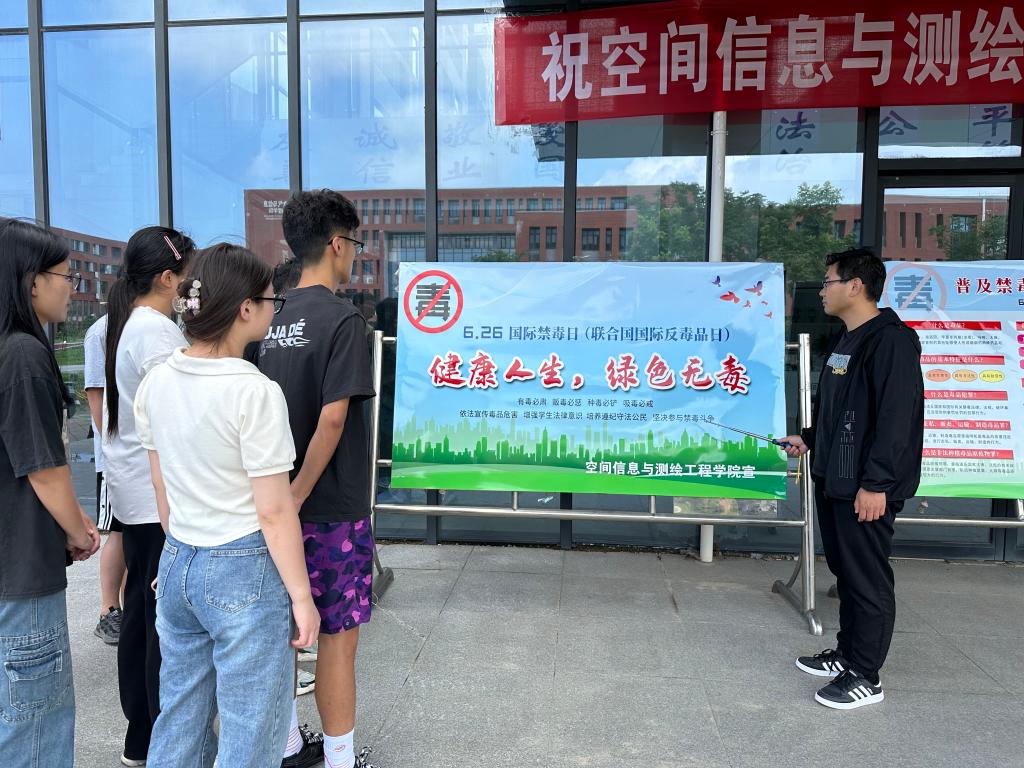 进行禁毒教育专题宣讲。6月25日上午,在学院前广场,各年级学生辅导员结合相关海报以“健康人生,绿色无毒”为主题进行禁毒教育专题宣讲。辅导员们结合实际案例,从可能接触到毒品的场景,如何预防毒品、如何“禁毒防艾”等多角度进行了详细介绍,让学生深入了解禁毒法律和法规,呼吁青年群体珍重生命,远离毒品。同学们听过宣讲后,纷纷表示,作为新时代青年大学生,要自觉抵制毒品诱惑,积极主动做禁毒知识的传播者、禁毒教育的参与者,不让毒品进校园、进家庭。