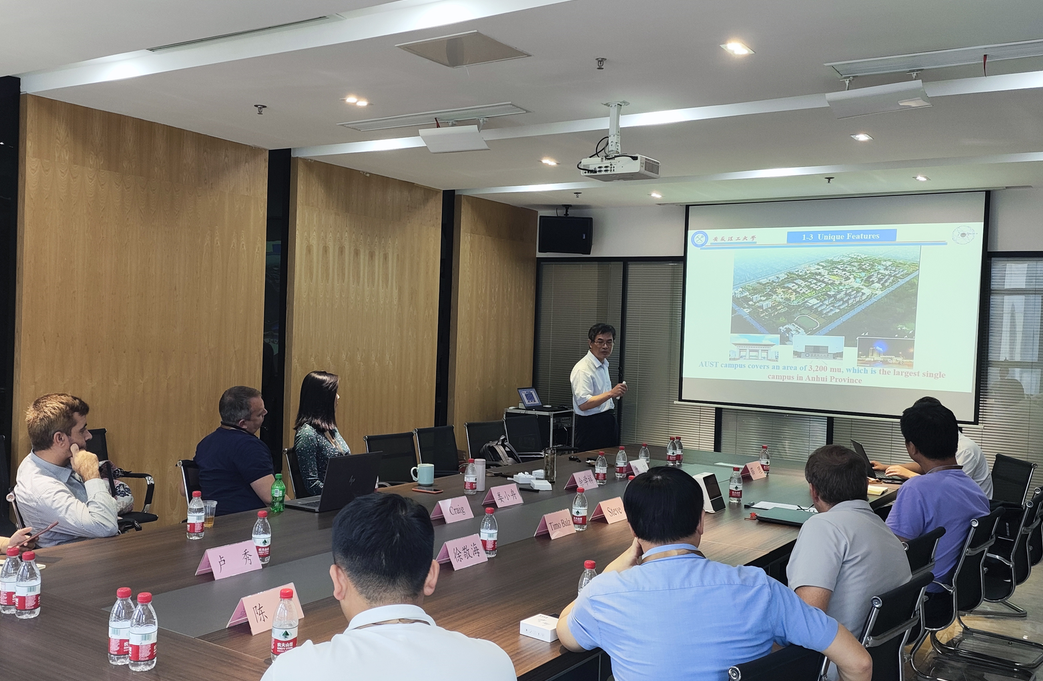 来自武汉大学测绘遥感信息工程国家重点实验室、巴基斯坦空间技术学院、英国拉夫堡大学、英国南安普敦大学以及致力于国际合作的相关企业的多位海内外专家学者参加了本次研讨会。余学祥在会上做了题为《Education of Geomatics and policies for international cooperation in Anhui University of Science and Technology》的报告,介绍学校和学院的发展历程、近几年取得的主要成就、学科专业建设、师资力量、人才培养、国际合作与交流、高层次人才引进等方面的情况。