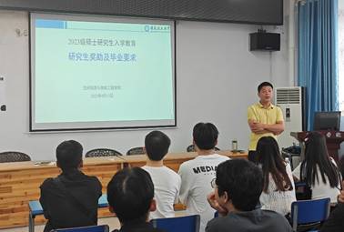 为了让新生能及时准确地了解学校最新的研究生奖助政策,杨震老师重点介绍了研究生的国家奖学金、学业奖学金、国家助学金、生源地助学贷款、“三助”助学金等奖助学金政策以及研究生(学硕和专硕)的基本毕业要求,为全体新生分享了宝贵的经验和感悟。他鼓励同学们要珍惜在校的研究生涯,并提前做好个人的学业进展规划。