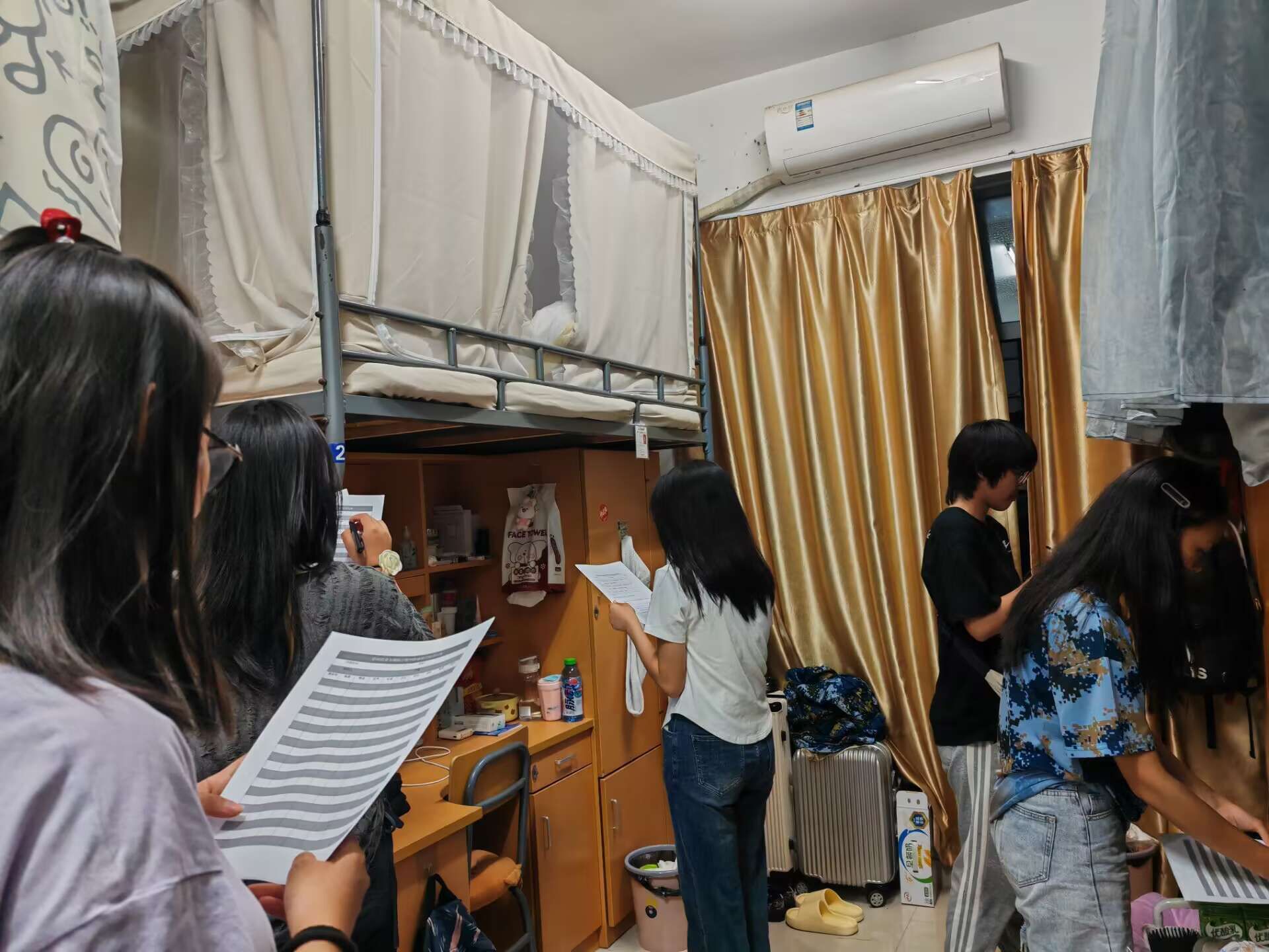 学生社区自管会成员检查宿舍卫生