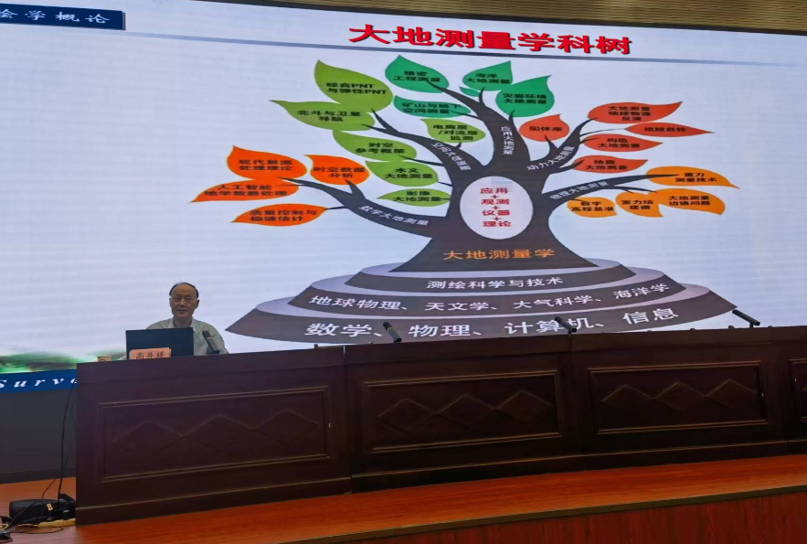 高井祥教授从国家重大工程项目,引入测绘科学与技术在经济和国防建设中的尖兵和眼睛作用;从如何确定地面点的空间位置,引入测绘学的基本概念和基本任务;从大禹治水到三峡水利枢纽工程,从模拟法测图到现代对地观测技术,从最小二乘算法到大数据和云计算,从普通测量学到虚拟仿真和智能测绘,从传统大地测量到北斗卫星导航系统,由浅入深地讲解了测绘学的发展史、分支学科、现代发展、科学地位和作用以及测绘人的特点,讲授内容丰富充实、图文并茂,讲授方式高屋建瓴、循循善诱。最后,高教授寄语新生:测绘专业内涵实际就是人生,“测天测地测自己,绘山绘水绘人生”,“大地当纸,绘祖国美好蓝图;瀚海为墨,写自己壮丽人生”。