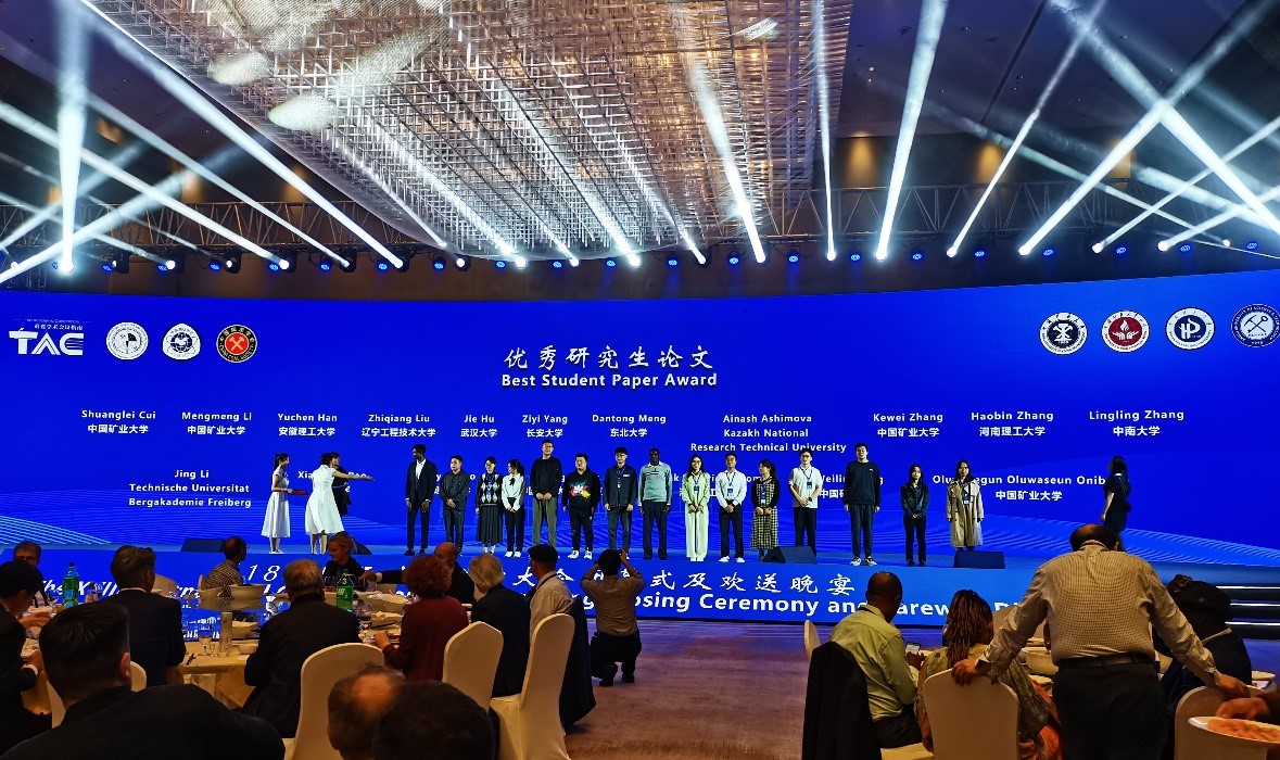 大会期间,由中国学者发起并组织了关于在智能测绘与绿色矿山领域落实中国支持高质量共建“一带一路”八项行动的讨论,得到了“一带一路”国家参会代表的广泛响应,来自中国、俄罗斯、巴基斯坦、南非、哈萨克斯坦、波兰等11个国家的参会代表签署发布了“一带一路”国家智能测绘与绿色矿山产学研合作宣言(徐州大龙湖宣言)。28日闭幕式上,国际矿山测量协会颁发了1项终生成就奖、1项杰出贡献奖、9项青年科学家奖,遴选出12个最佳口头报告、9个最佳PICO、19个最佳研究生论文等奖项,宣布在中国矿业大学设立国际矿山测量协会协调处(Coordination Division),并举行了国际矿山测量协会会旗交接仪式。