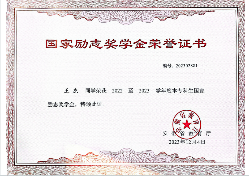 日前,共青团安徽省委、安徽省大学生联合会联合公布2023-2024年度“安徽省大学生自强之星”获得者及“中国大学生自强之星”奖学金推荐候选人评选结果,我校本科生王杰榜上有名。