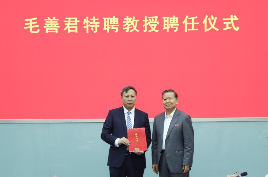 5月7日下午,学校在国家重点实验室一号会议室举行聘任仪式,聘请北京大学地球与空间科学学院教授、博士生导师,北京龙软科技股份有限公司董事长毛善君为我校特聘教授,毛善君捐赠设立“龙软科技”测绘奖学金。校党委副书记、校长袁亮院士出席仪式,并为毛善君颁发聘书和捐赠证书。仪式由校党委常委、副校长张平松主持。
