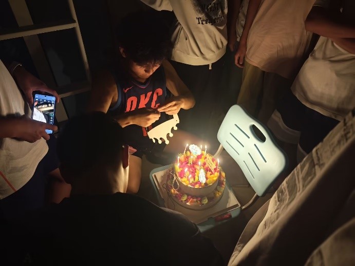 班级同学在宿舍集体为新生庆祝生日