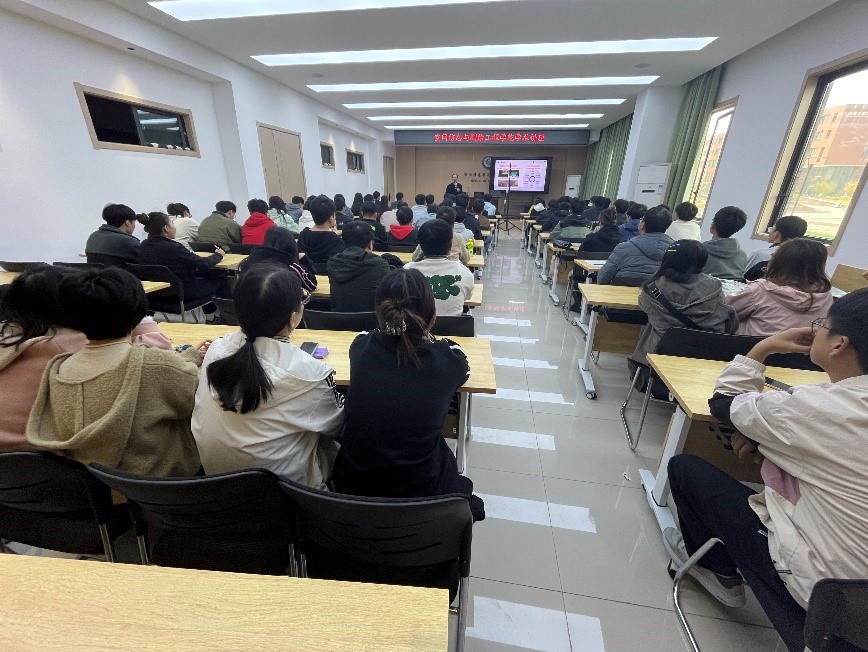 开展学术交流,并作题为《面向地质灾害的低成本“北斗+视觉”智能监测预警技术》的学术报告。报告会在求本楼204报告厅举行,学院青年教师、研究生等近100人聆听了报告。报告会由副院长赵兴旺主持。