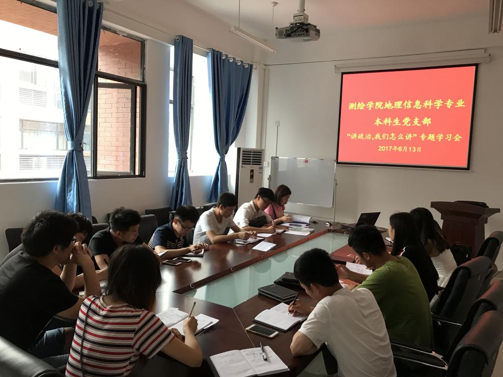 6月13日中午,地理信息科学专业本科生党支部组织全体党员在学院402会议室,开展“讲政治,我们怎么讲”专题学习会。