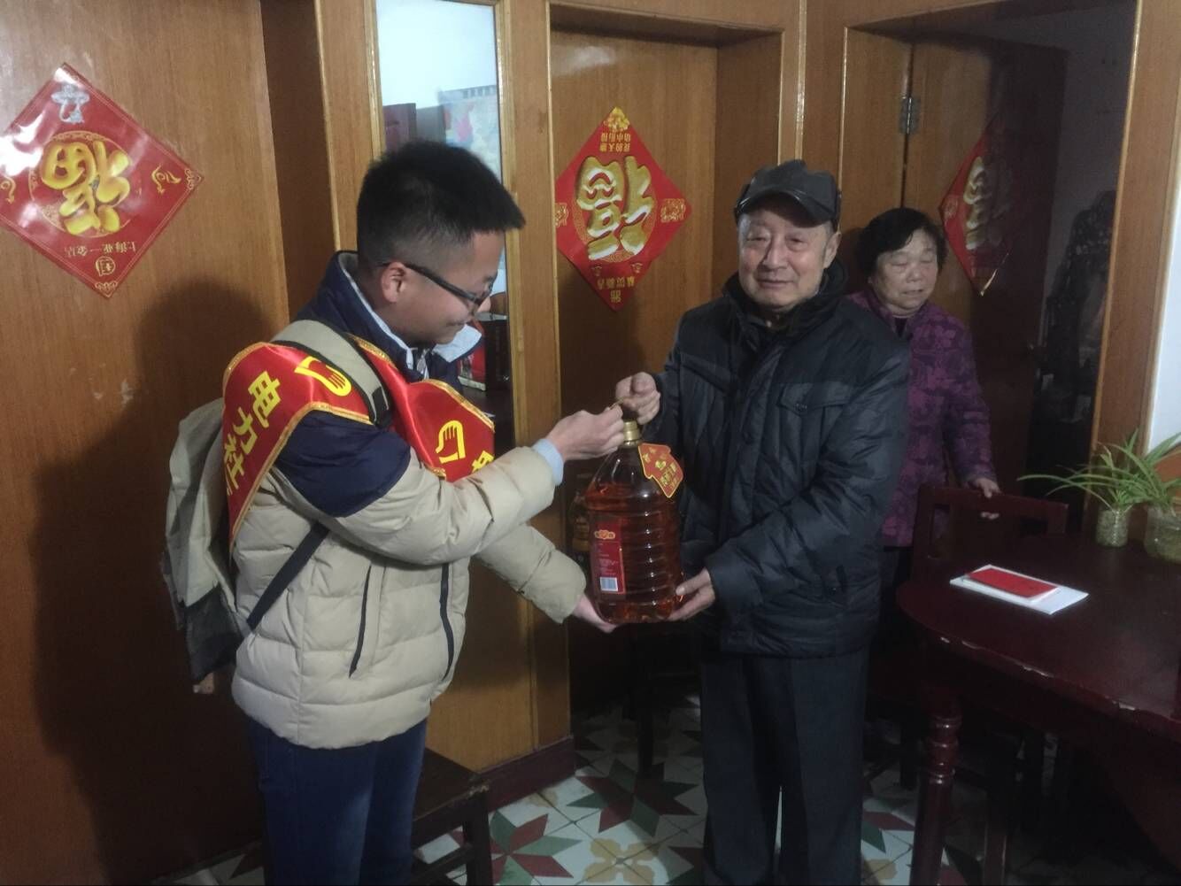 吴军和赵志根带着学院各支部的党员代表走访了电力小区的3户困难群众,详细询问了他们的健康状况和生活上的困难,鼓励他们树立信心,积极面对生活,勇敢面对生活中的挫折。学生党员把带来的大米、食用油等生活必需品交到困难群众手中。